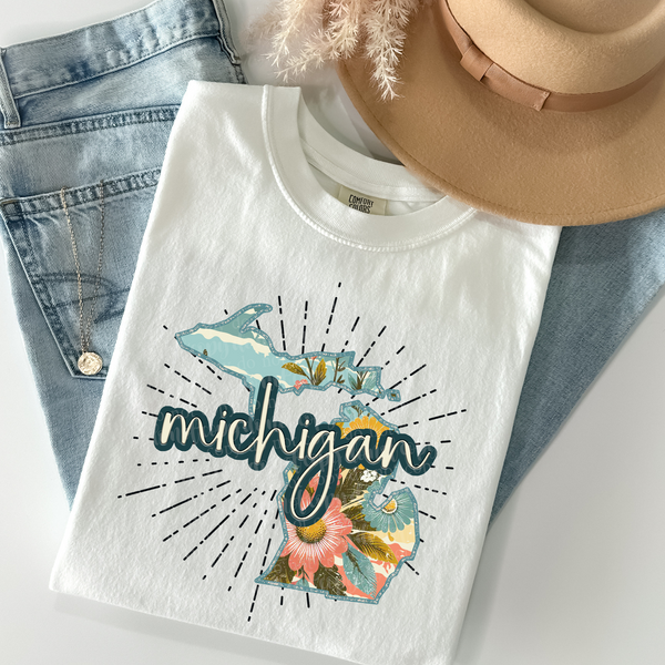Michigan floral filled blue outline (TDD) 39323 DTF transfer
