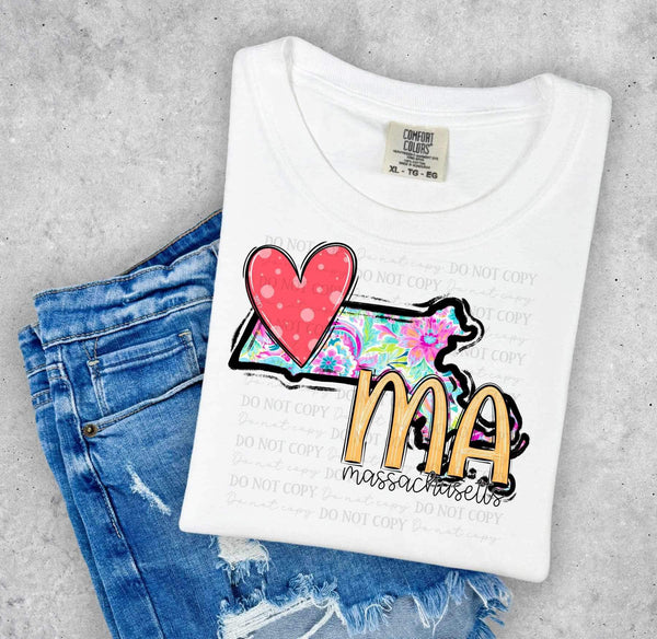 MA Massachusetts colorful with dark red heart (ABD) 27012 DTF transfer