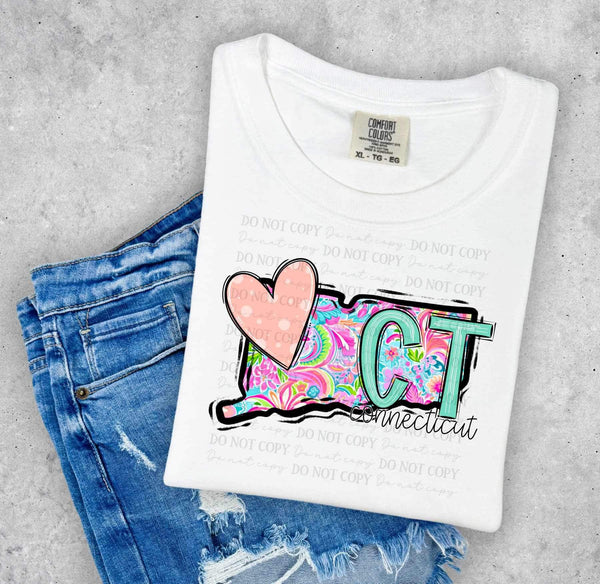 CT Connecticut colorful with light pink heart (ABD) 27000 DTF transfer