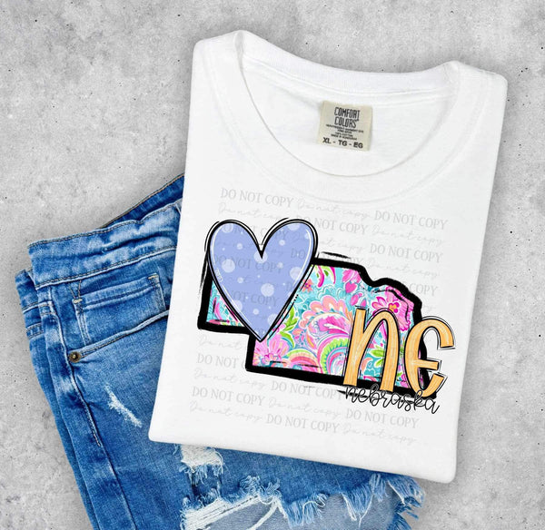 NE Nebraska colorful with purple heart (ABD) 26992 DTF transfer