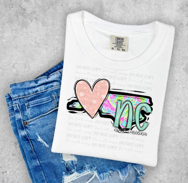 NC North Carolina colorful with light pink heart (ABD) 26999 DTF transfer