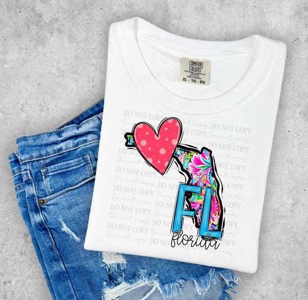 FL Florida colorful with dark red heart (ABD) 27011 DTF transfer