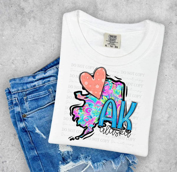 AK Alaska colorful with light red heart (ABD) 27013 DTF transfer