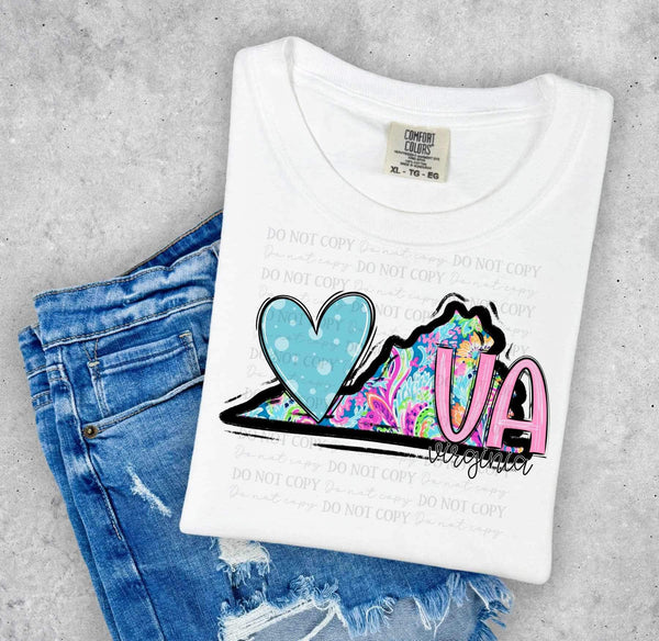 VA Virginia colorful with light blue heart (ABD) 27003 DTF transfer