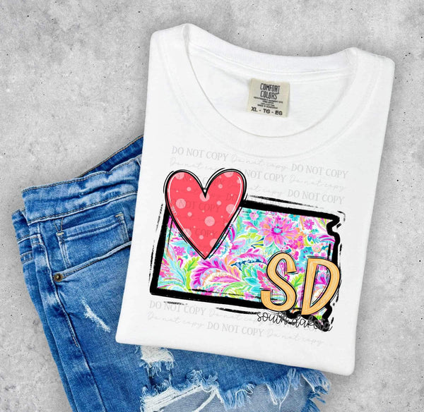SD South Dakota colorful with dark red heart (ABD) 27010 DTF transfer