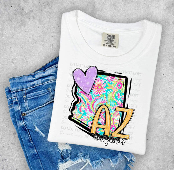 AZ Arizona colorful with purple heart (ABD) 26990 DTF transfer