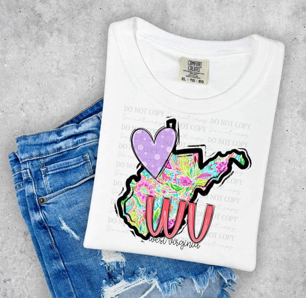 WV West Virginia colorful with purple heart (ABD) 26988 DTF transfer