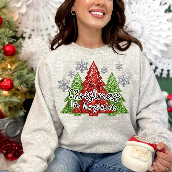 Christmas in Virginia (green and red sequin trees) 11914 DTF Transfer