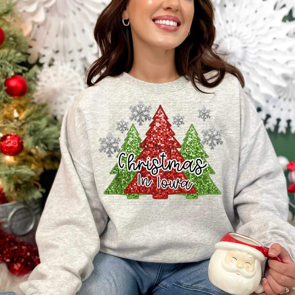Christmas Iowa (green and red sequin trees) 11903 DTF Transfer