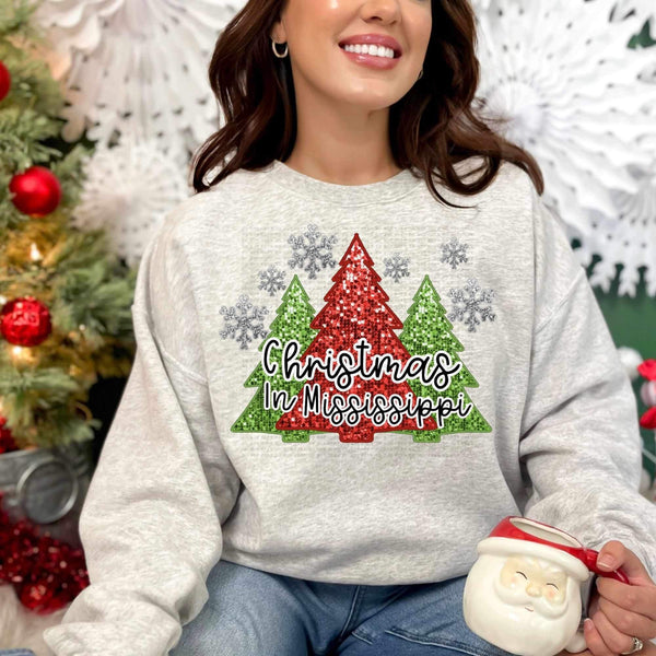 Christmas in Mississippi (green and red sequin trees) 11891 DTF Transfer