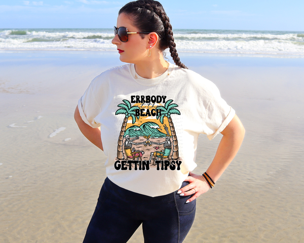 Errbody At The Beach Gettin Tipsy Palm Trees Skellie 115758 DTF Transfer