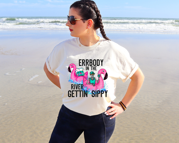 Errbody In The River Gettin Sippy Pink Flamingos Skellie 115910 DTF Transfer