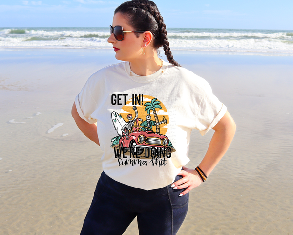Get In We're Doing Summer Shit Skellie Red Car Palm Trees 115773 DTF Transfer