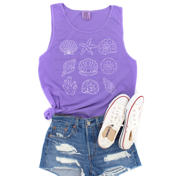 Sea shell collage WHITE OUTLINE (CSC) 32731 DTF transfer