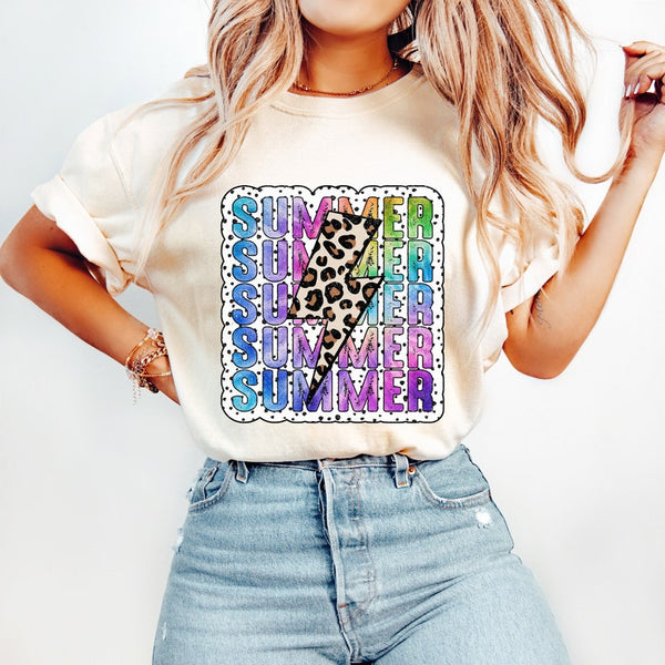 Summer stacked with leopard lightning bolt 32996 DTF transfer
