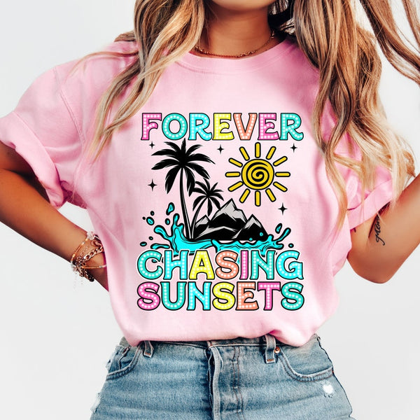 Forever chasing sunsets sun, water, palm tree 32987 DTF transfer
