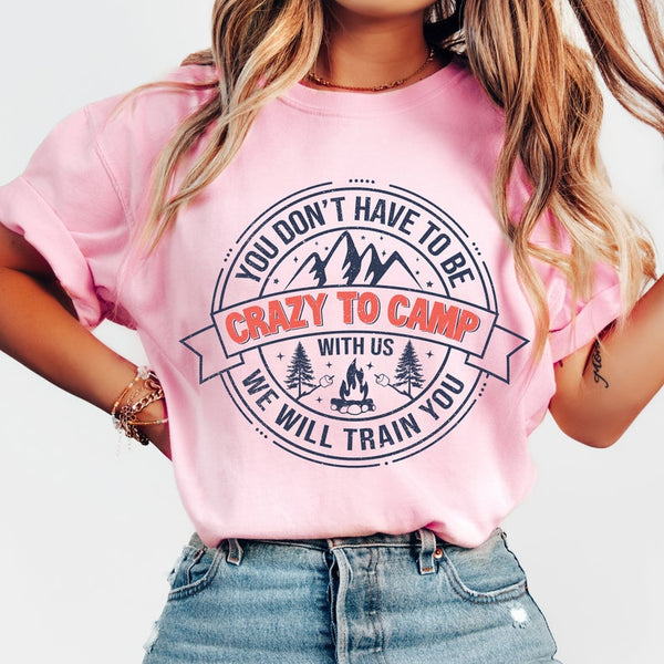 You don’t have to be crazy to camp with us we will train you circle 32984 DTF transfer