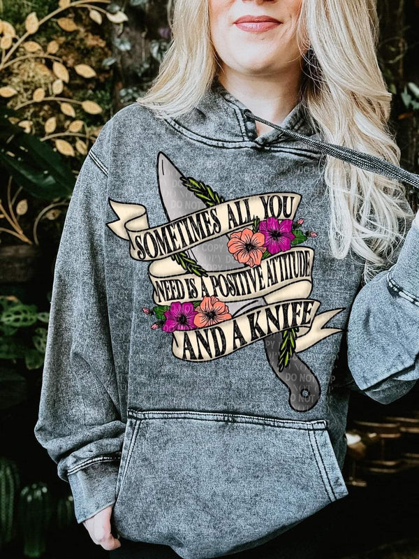 Sometimes all you need is positive attitude and a knife (knife, florals greenery, ribbon) DTF TRANSFER