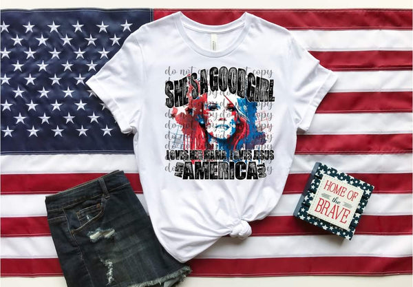 She's a good girl loves her mama loves Jesus and America too DTF Transfer