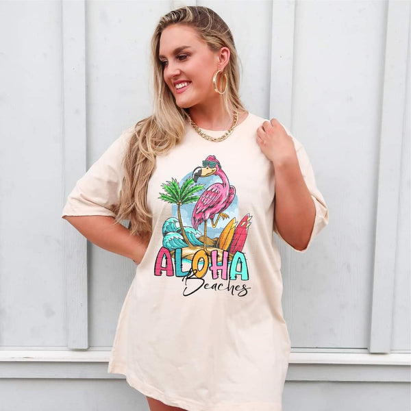 Aloha beaches pink flamingo palm tree 112172 DTF TRANSFER