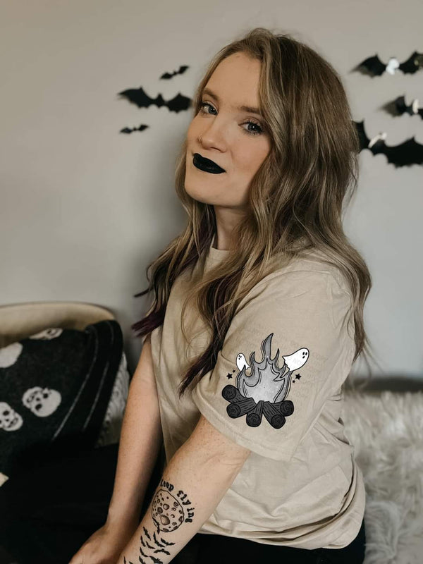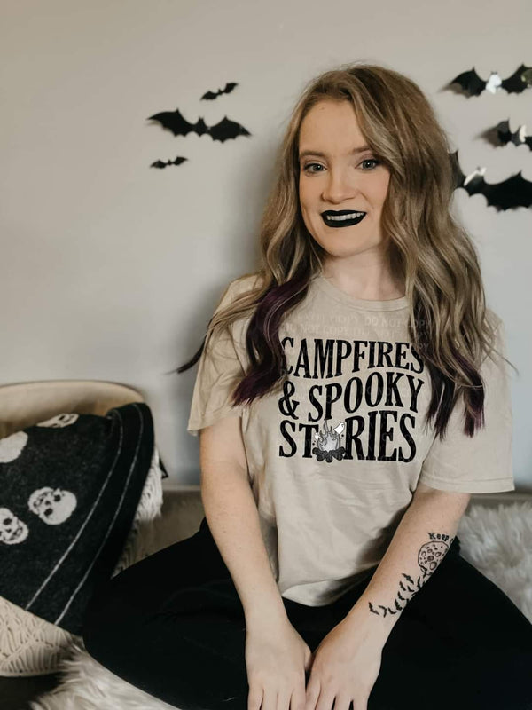 Campfires and spooky stories BLACK ink with fire DTF TRANSFER