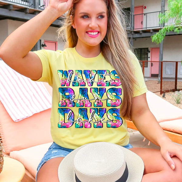 Boat waves sun rays lake days colorful stacked DTF transfer