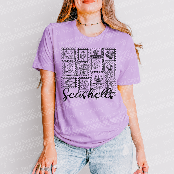 Seashell Stamps Black NO WORDS (CMLD) 102770 DTF transfer