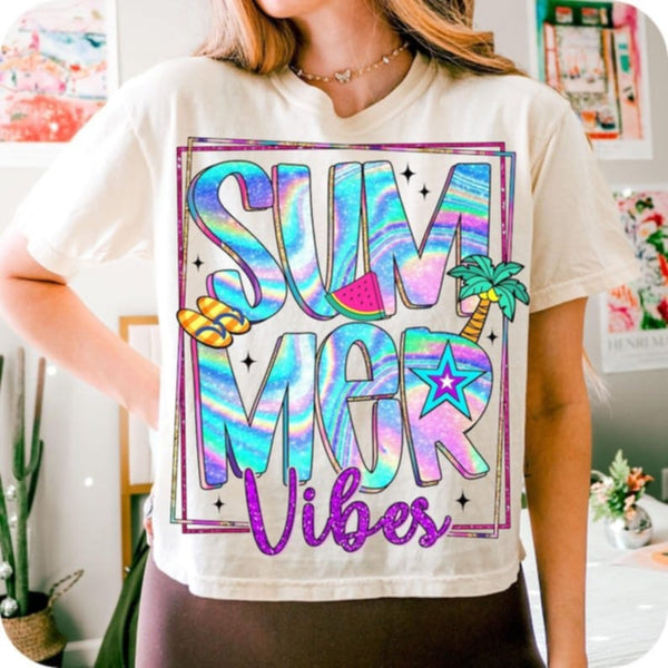 Summer vibes blue, yellow, pink 99020 DTF transfer