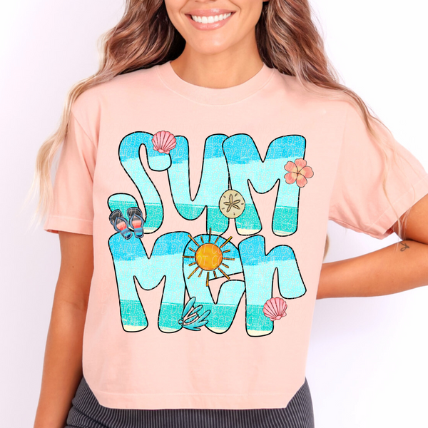 Summer State of Mind blue gradient with beach things (CITY) DTF transfer