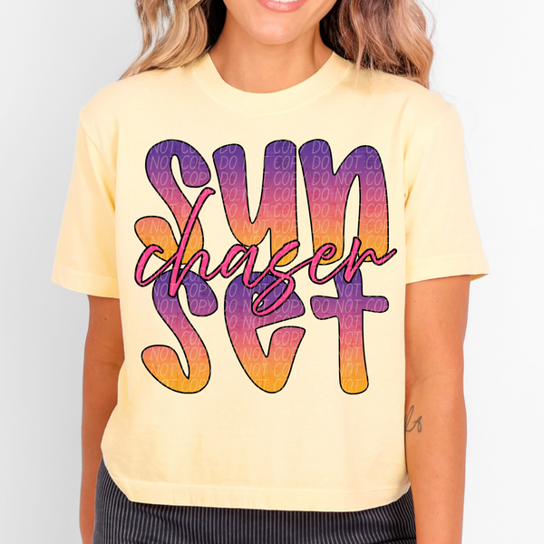 Sunset Chaser Purple Ombre PINK Font (CITY) DTF transfer