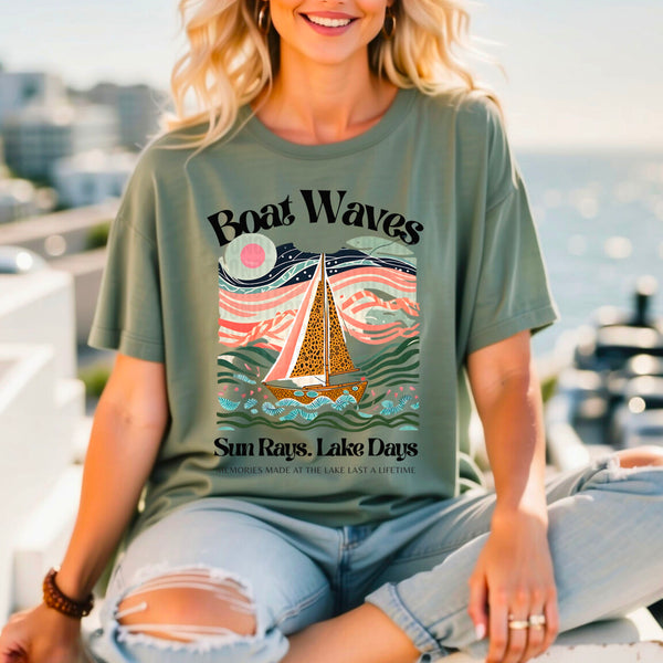 Boat Waves Sun Rays Lake Days 104411 DTF transfer