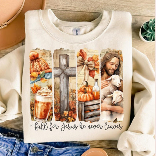 Fall for Jesus he never leaves frame collage Sunday Special DTF