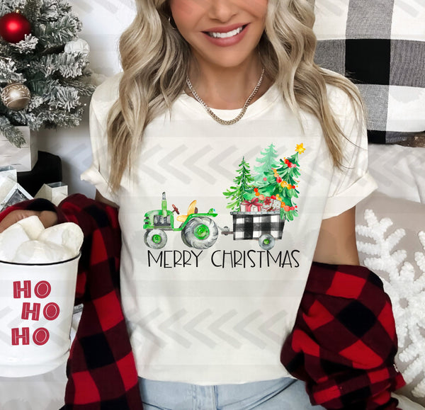 Merry christmas tractor pulling plaid wagon 148469 DTF transfer