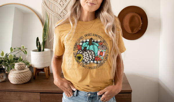 Pumpkins leaves smores bonefires fall circle 8264 DTF TRANSFER