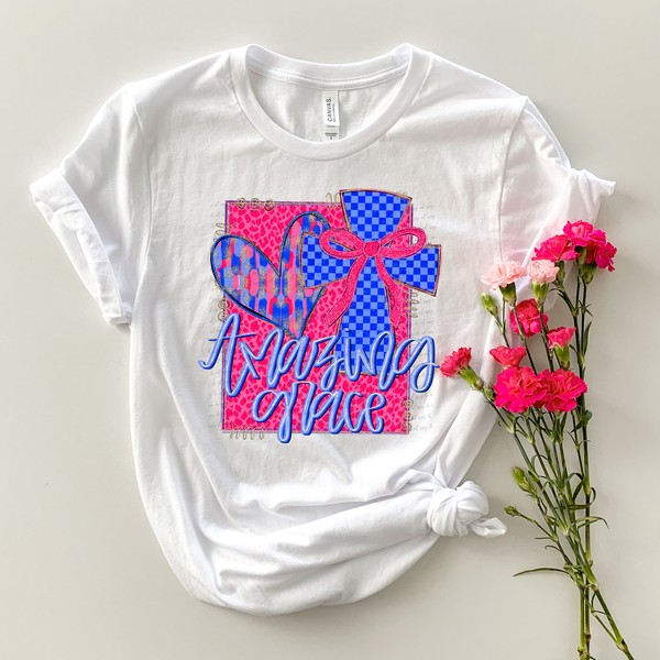 Amazing Grace Faux Glitter Brush Stroke Heart Checkered Cross 81796 DTF Transfer