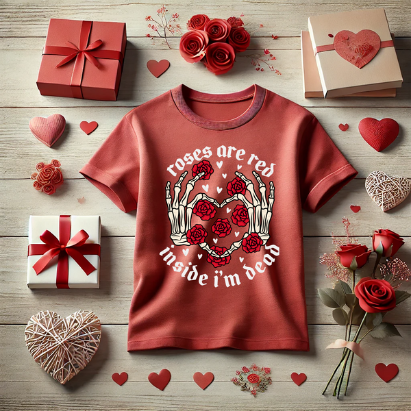 Roses Are Red Inside I'm Dead Red White 81634 DTF Transfer
