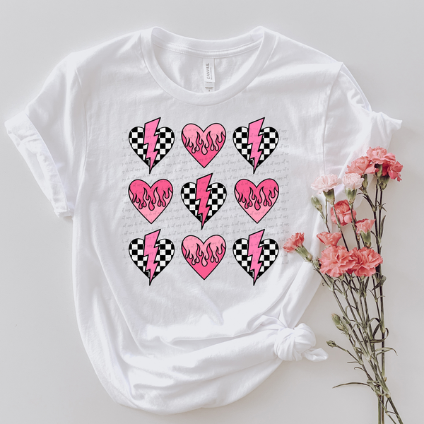 Checkered Heart Flame Lightning Bolt Grid 81595 DTF Transfer