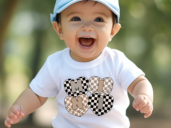 Mini Checkered Hearts Beige Black Gray 81601 DTF Transfer