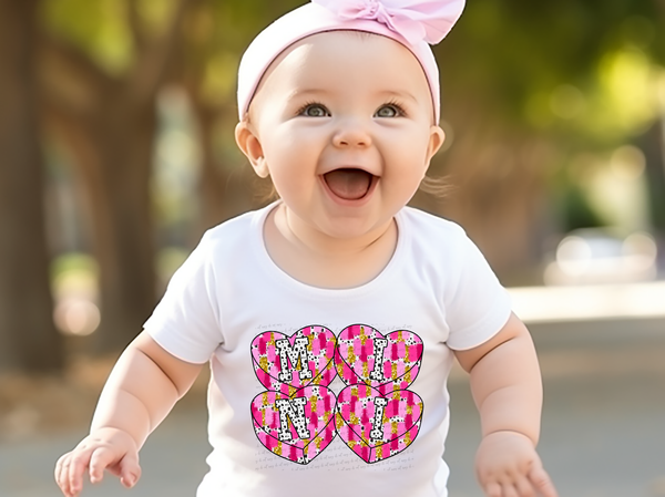 Mimi Checkered Hearts Beige 81599 DTF Transfer