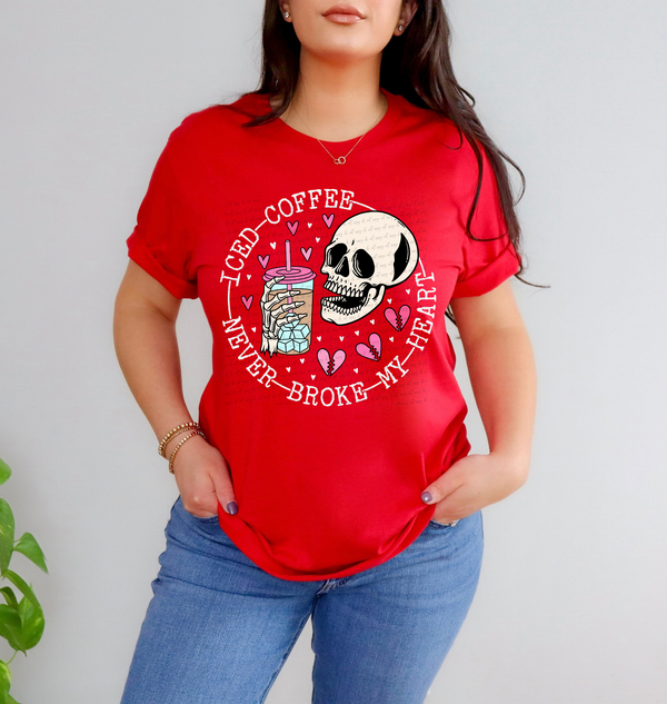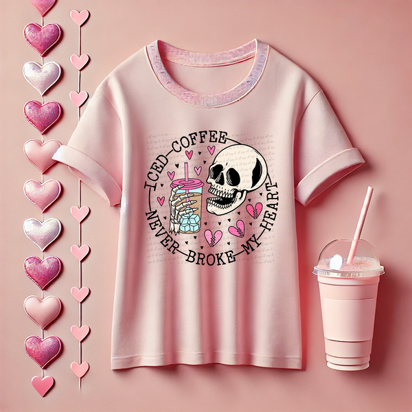 Iced Coffee Never Broke My Heart White Font 81521 DTF Transfer