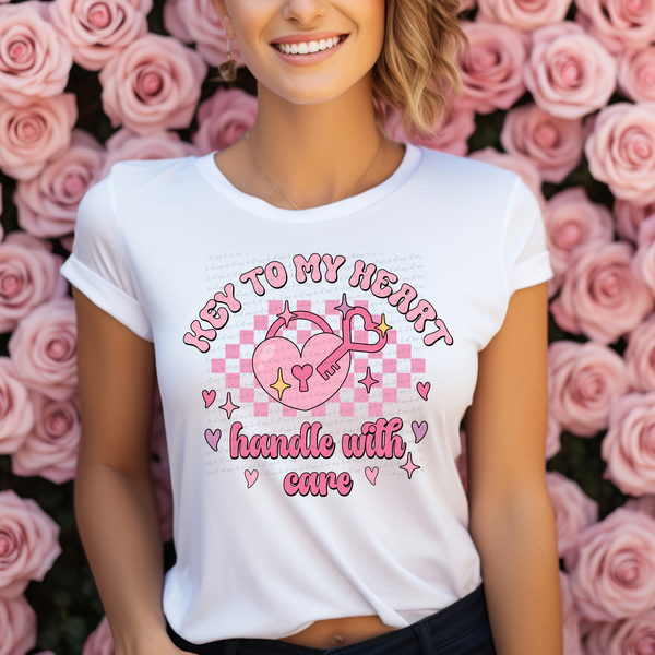 Key To My Heart Handle With Care Checker 81526 DTF Transfer