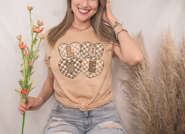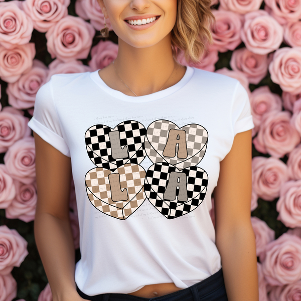 Lala Checker Hearts Beige Black Grey 81531 DTF Transfer