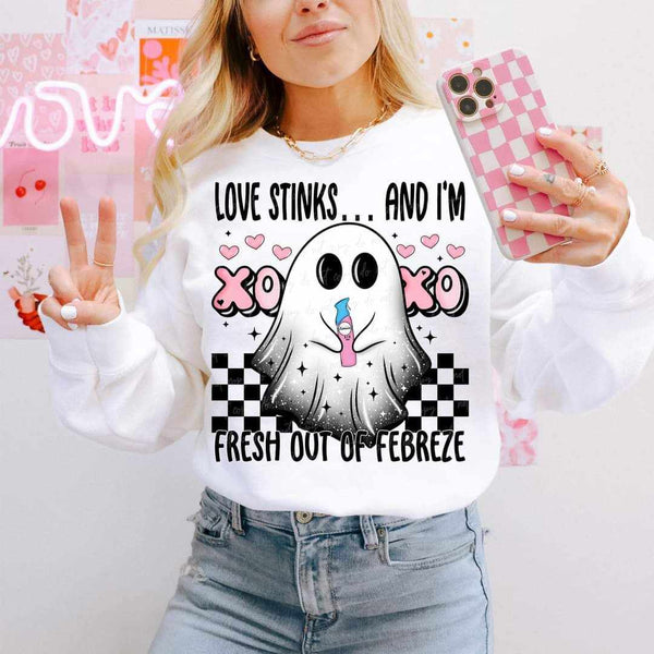 Love stinks and I’m fresh out of febreze ghost (VIRGO) 70617 DTF transfer