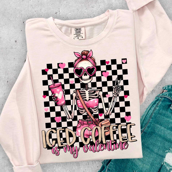 Iced coffee is my valentine checkered background 70487 DTF transfer