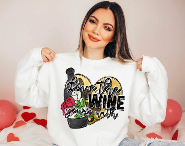 Love the wine your with heart and wine bottle DTF TRANSFER
