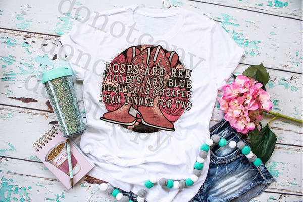 Roses are red, tequila is cheaper 112750 DTF TRANSFER