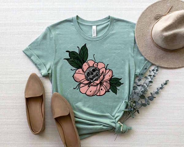 Dusty rose flowers with skull head center 1797 DTF TRANSFER