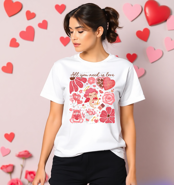 All You Need Is Love Floral Cupid Hearts 76622 DTF Transfer