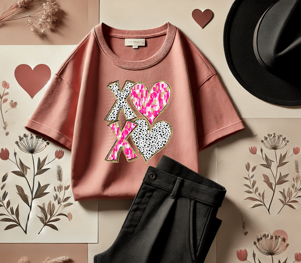 Xoxo Pink Gold Dalmatian Hearts 76425 DTF Transfer