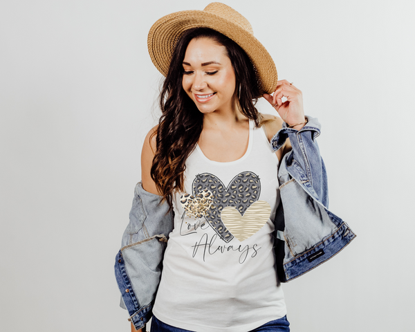 Love Love Love (light pink, leopard print, gold glitter stripe lettering) 1737 DTF TRANSFER